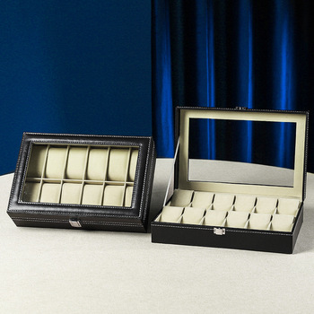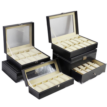 Шкатулка для ювелирных изделий высокого качества черная искусственная кожа 20 слотов чехол для часов со стеклянной крышкой 2 слоя Запираемые коробки для хранения часов