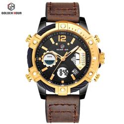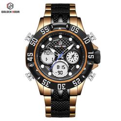 GOLDENHOUR GH119 Gentlemen nuovo modello cinturino in acciaio inossidabile doppio Display cronografo orologi distributore grossista