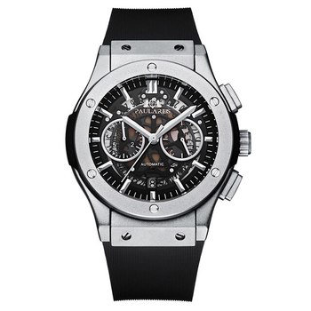 Paulareis Hombres Cronógrafo Esqueleto Ver a través del estilo Lujo Oro Rosa Plata Negro Titanio Estilo Caucho Moda Reloj de cuarzo